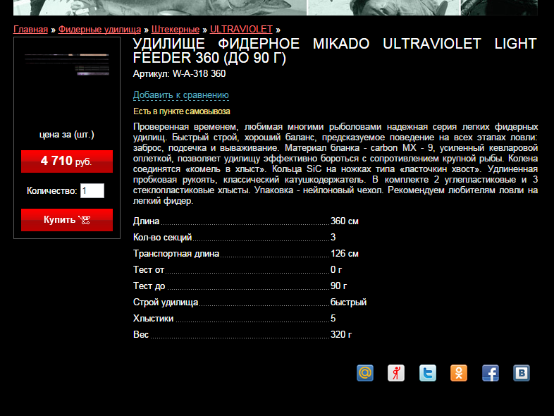 1. Палка Микадо Ультрафиолет 390см. 90г. – т.к. ловил на стояке использовал только самый тонкий стеклянный квивер – палка макаронина конечно, но сойдёт.