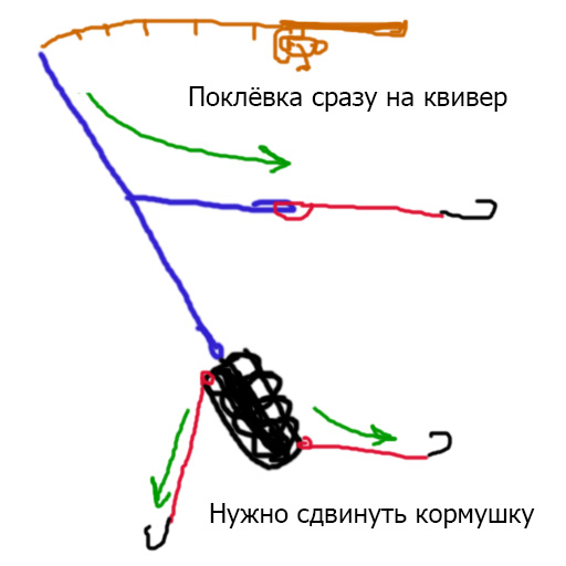 Карабины на оснастке увеличивают шанс запутаться перехлестнуться, а от закручивания на кормушке или грузике всегда есть вертлюжок.