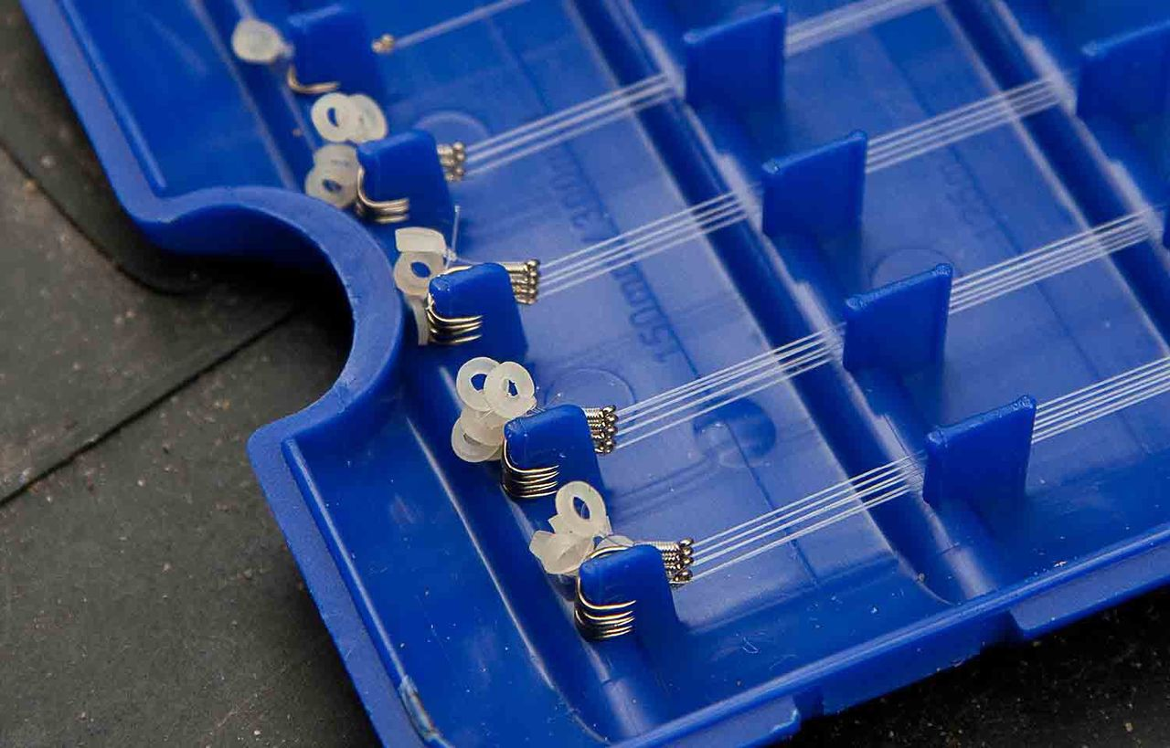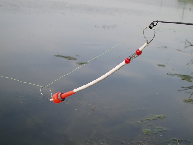 На первом пике классический карповый волос, но втором резинка для пелетса.