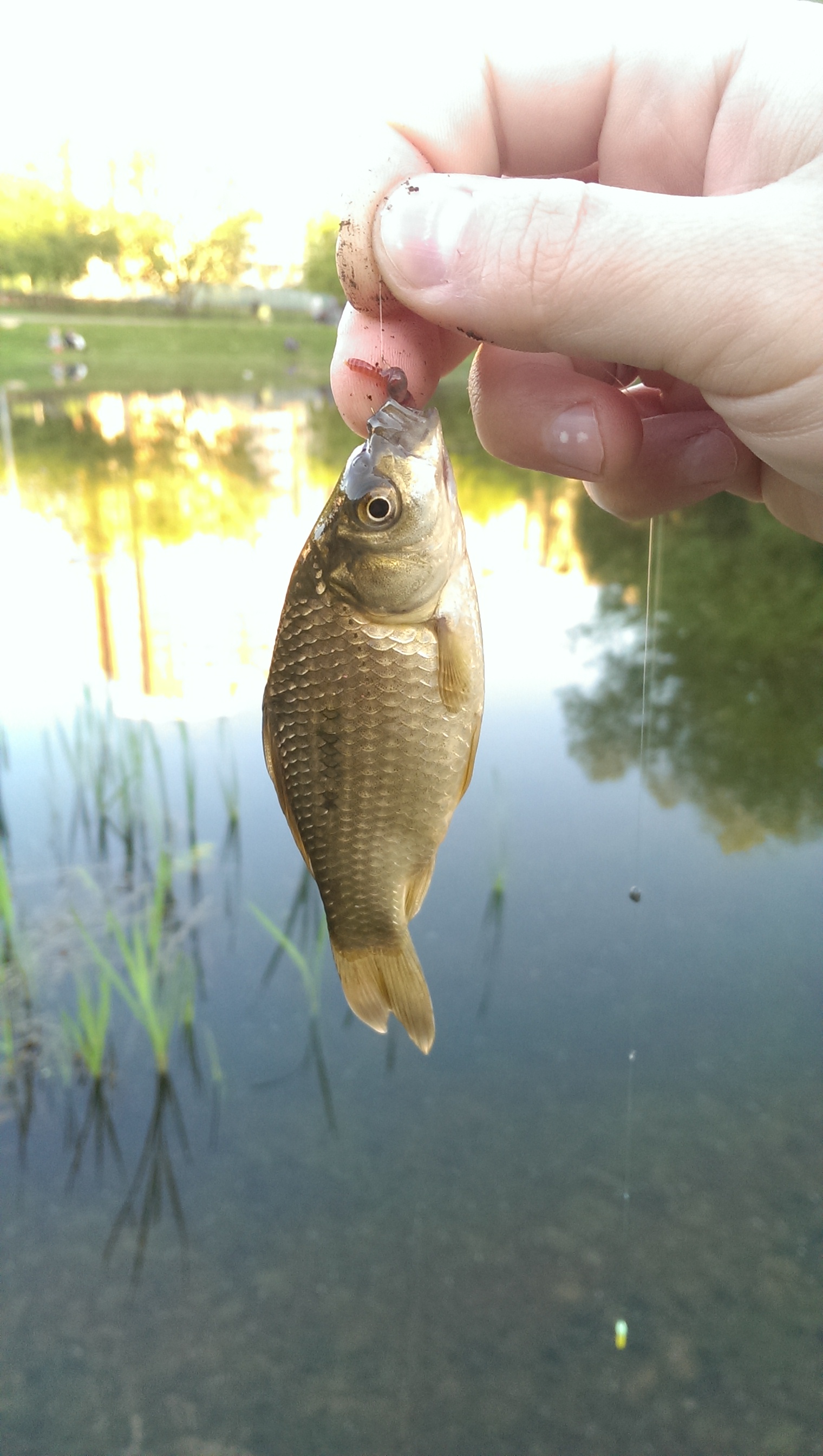 Мы вчера сходили на местный пруд. Ловить начали довольно поздно, потому что насадку забыли дома и пришлось ехать в ближайший магазин. В фаворитах оказался опарыш, но коса все равно был какой-то вялый и наладился только с заходом солнца. На прикормку никто не реагировал, такое ощущение, что карась просто водил хороводы по водоему и иногда заглядывал на точку. В итоге я наловил мелочи, напарник взял пару бонусов. Полярная-кун