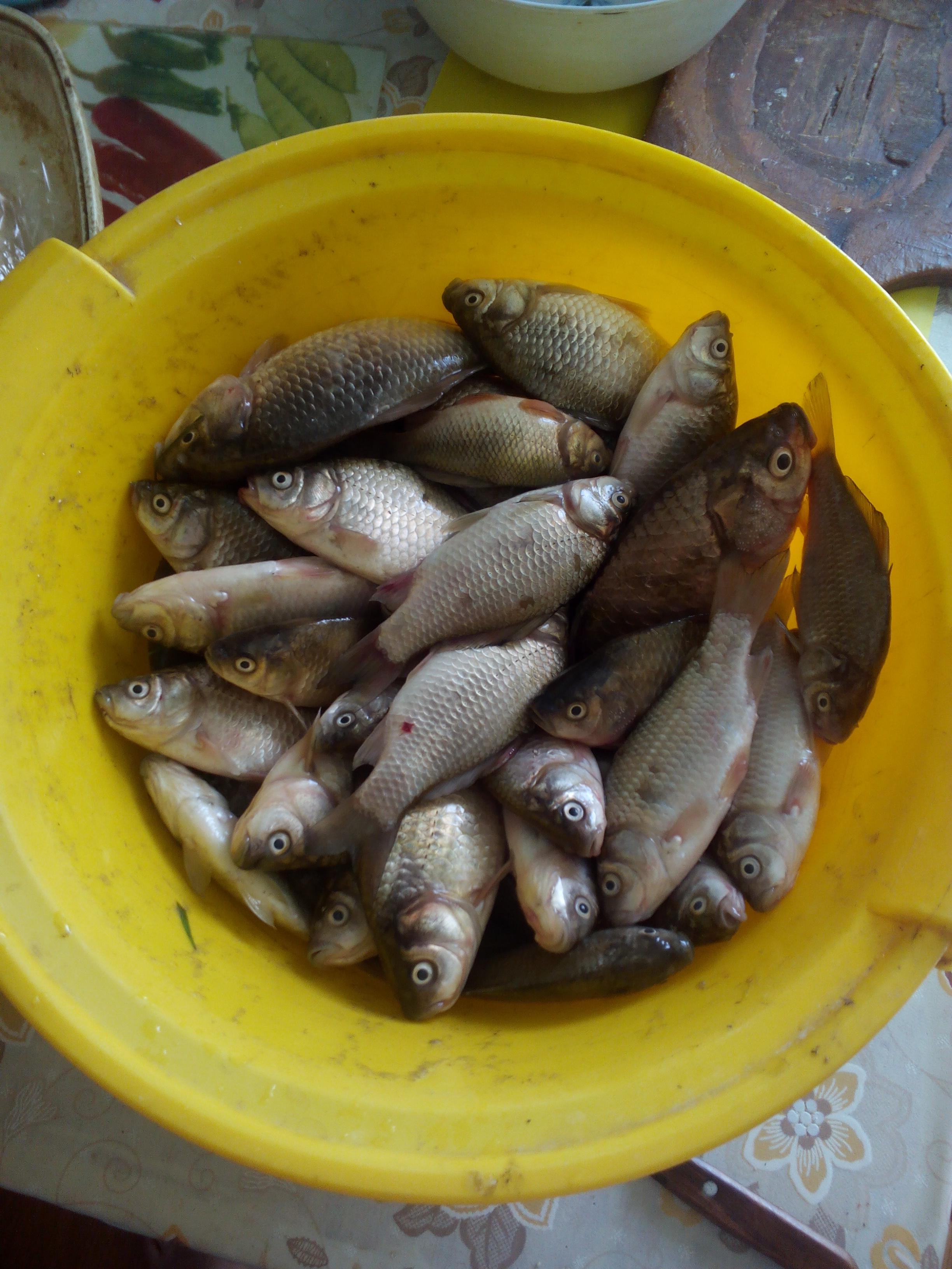 Пошёл на рыбалку в 3 ночи, сварил перловки на тест. Дул сильный ветер и на моём любимом месте были волны. В поисках тихих мест пошёл дальше по озеру. Перепробовал кучу мест но везде ветер шатал моё перо. Дальше озеро превратилось в 2м протоку. В конце ещё 3 более менее широких куска отрезанных друг от друга. И вот на последнем, в полметра от берега на глубине в 30см поймал долгожданного карасика. И в общем за 2 часа поймал 17 штук. Самый жирный 300 грамм. Всего на 4 кг вышло. Ловил на старого доброго американского червя не пучком, не кормил, перловку так и не затестил. На обратном пути ещё и маслят на 2кг насобирал. Как всегда оборвал леску о кусты. Чуть не поймал ужа, точнее сренькнул немного и только потом доперло что в руках сачок. Вобщем рыбалка удалась.