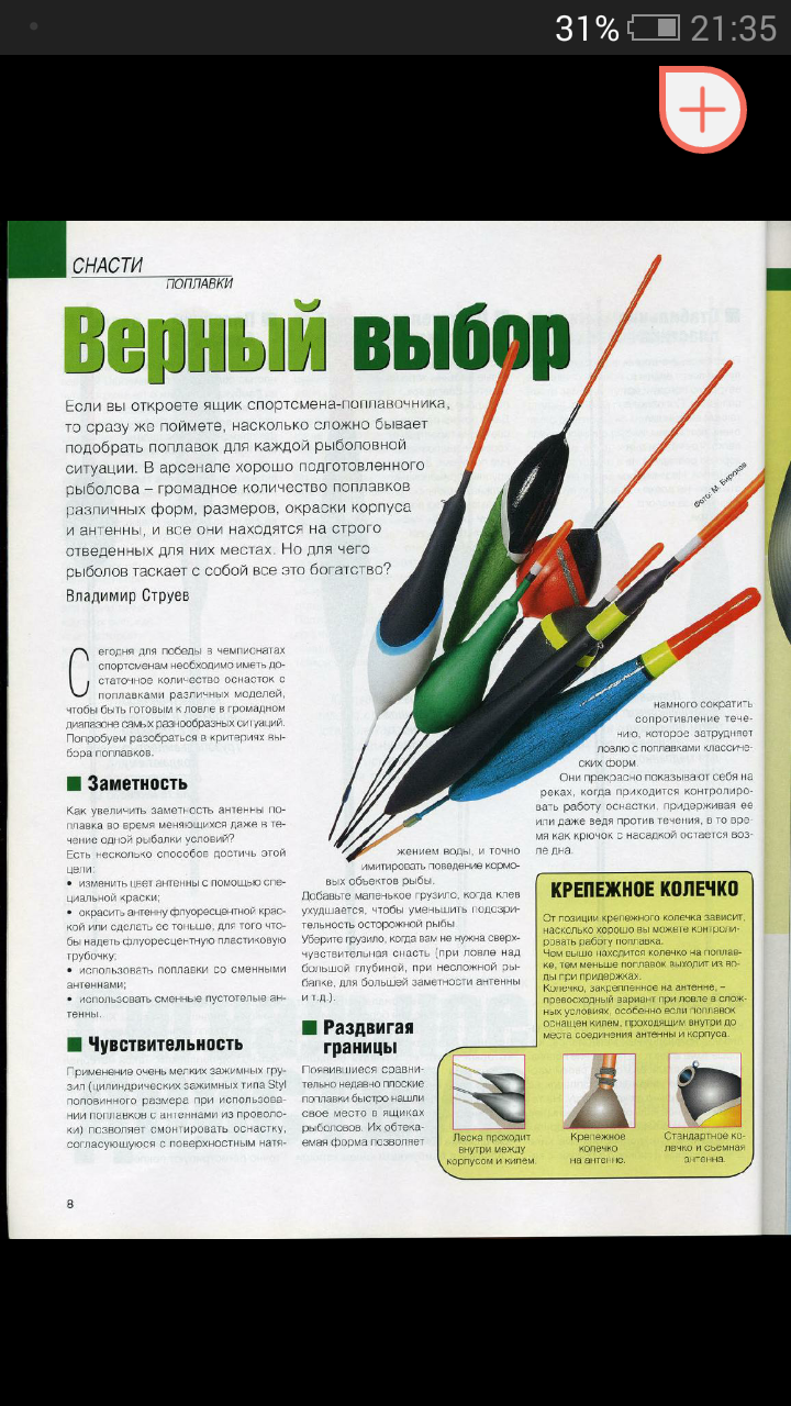 >>4312 Попловочный фак есть... в каком-то архивном треде, да. Тебе нужно: 1. Карбоновая удочка длиной 6 метров 3-5к 2. Коннектор - пластмаска, которая крепится на кончике удочке. К ней крепится оснастка леска, с поплавком, и грузилом - 30р 3. Леска Оунер броад диаметром 0,12 мм (на основу) и еще одну 0,10 (для поводком) - 500-600 р. 4. Набор грузил, нужно чтобы мелкие были - 200 р. 5. Крючки - #16, #18, #20 6. Поплавки - купи штуки три 2гр., 2,5гр., 3гр. 7. Мотовила для готовых оснасток 3 штуки. 8. Экстрактор для крючка 9. Ведро для прикормки маленькое 10. Стульчик 11. Садок 12. Стойки две для удочки и одну для садка.