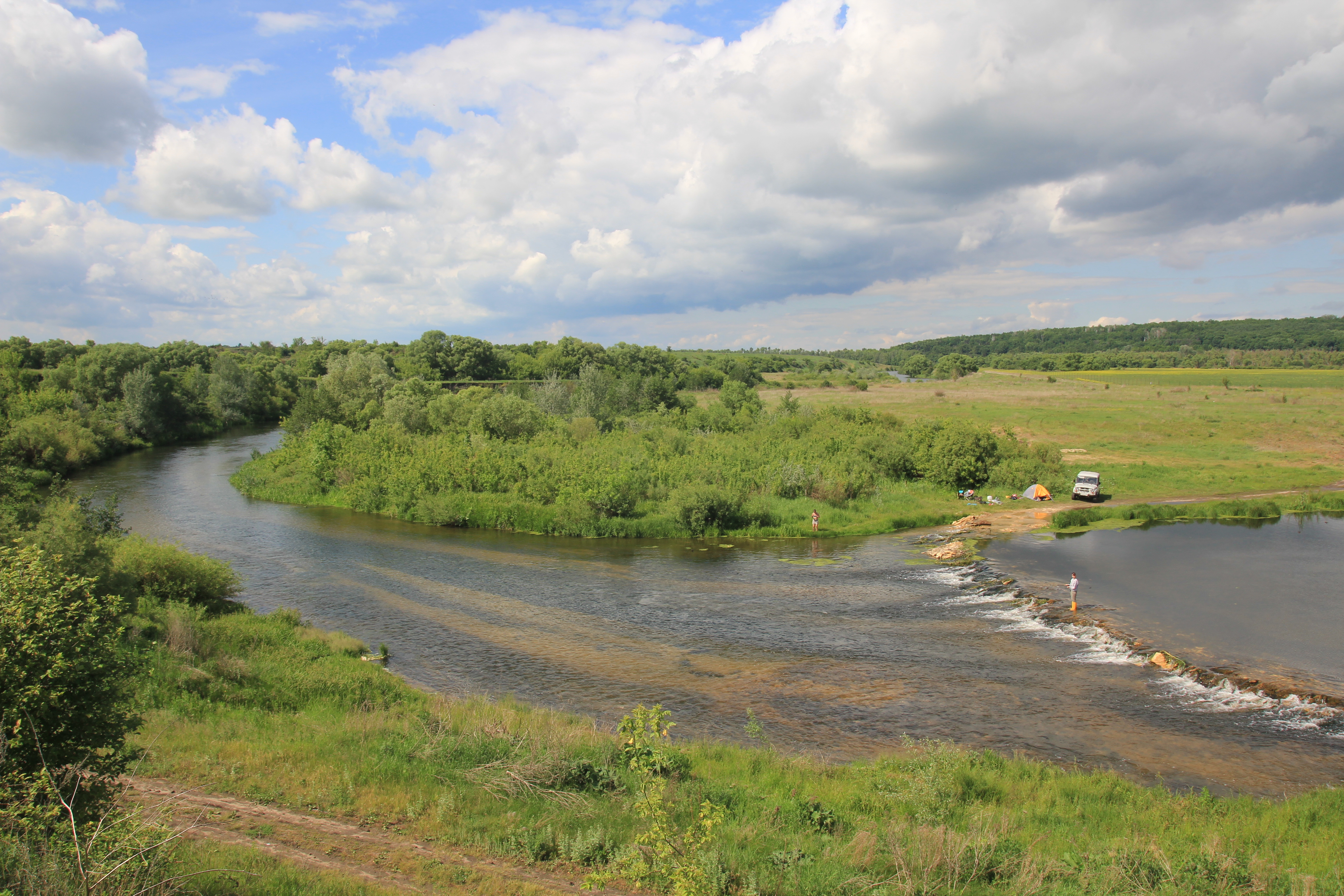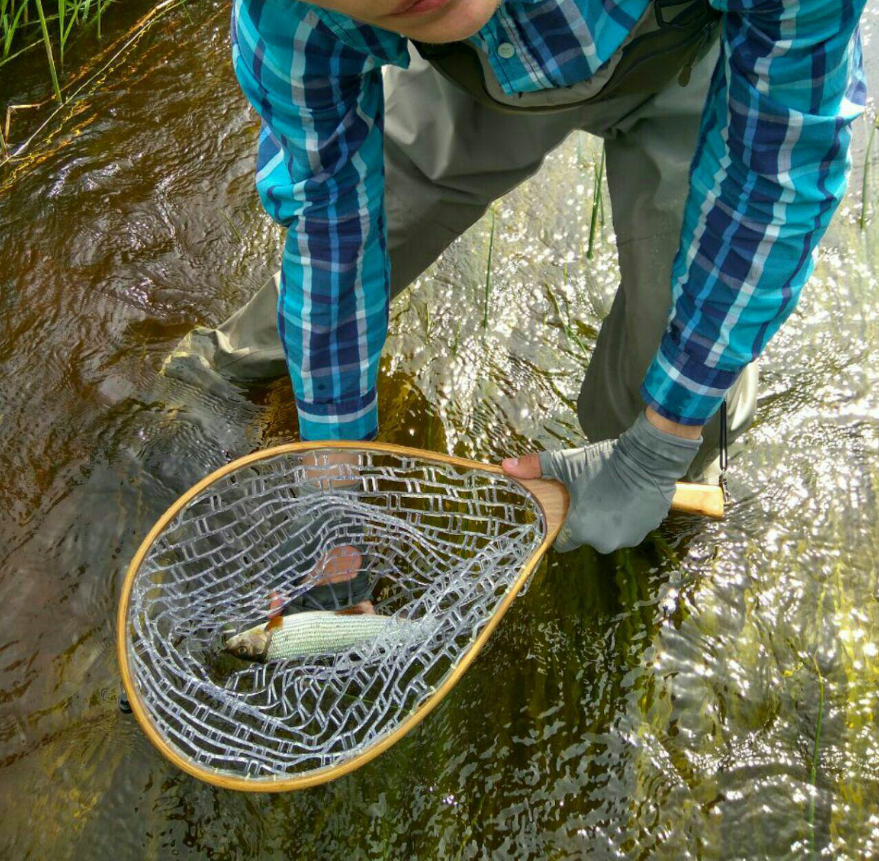 Река классная. Я до этого такие только в Карелии видал. Камни, перекаты все дела. И нахлыстовиков много ходит. Один даже поделился опытом. Как выяснилось шнур у меня в комплекте шёл с длинной «головой», лёгкий и швырять его надо было моим шестым классом просто ояебу как далеко. Сам мужик шёл по реке с комплектом 3 класса с жирнючим шнуром. который летел вообще как угодно и точно в цель.