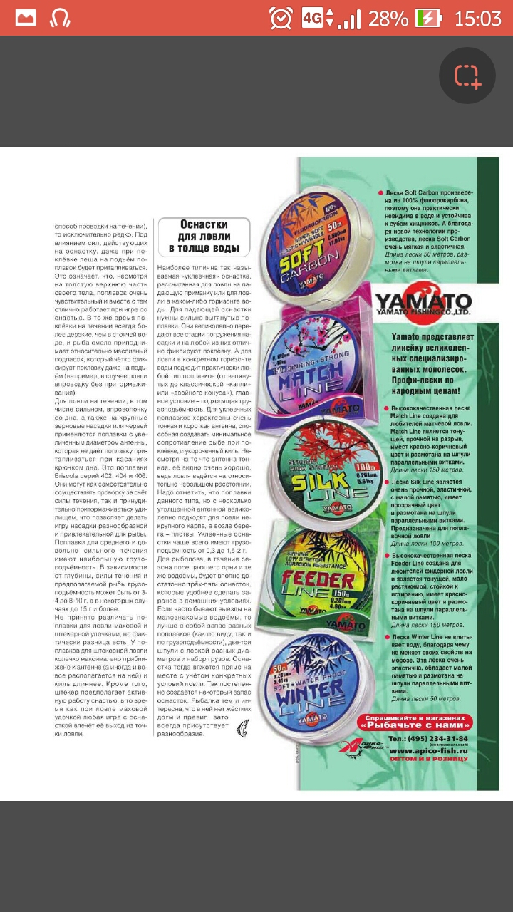 >>9856 матчевое удилище фикс, работа все мозги съела. Везде рекомендации на толщину лески от 0,16. Но думаю попробовать купить 0,12 и намотать на запасную шпулю хотя под низ придется толстой подмотать, на шпуле от 0,18 таблица И поплавок заменить на полегче, для повышения чувствительности.