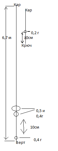 >>9412 На кончике удилища заводское ушко/колечко (удилище китайская 7 метровка). Соответственно на леске карабинчик, чтобы к удилищу цеплять. Леска 0,14мм длиной 6,7 метра. На конце вертлюжок. К нему поводки, обычно делаю 0,10, иногда 0,12. Крючки от 14 до 10 (ловлю на разные растительные насадки, червя не очень люблю - скучно, да и окушки заебывают). Поводок с карабинчиком, длиной 25 см. В 10 см от крючка подпасок. Остальные грузильца на основной леске, совсем рядом с вертлюжком, обычно 0,4 грамма, через 10 см два 0,4г, и 0,5г. За мэдскилз в пейнте не пинайте сильно
