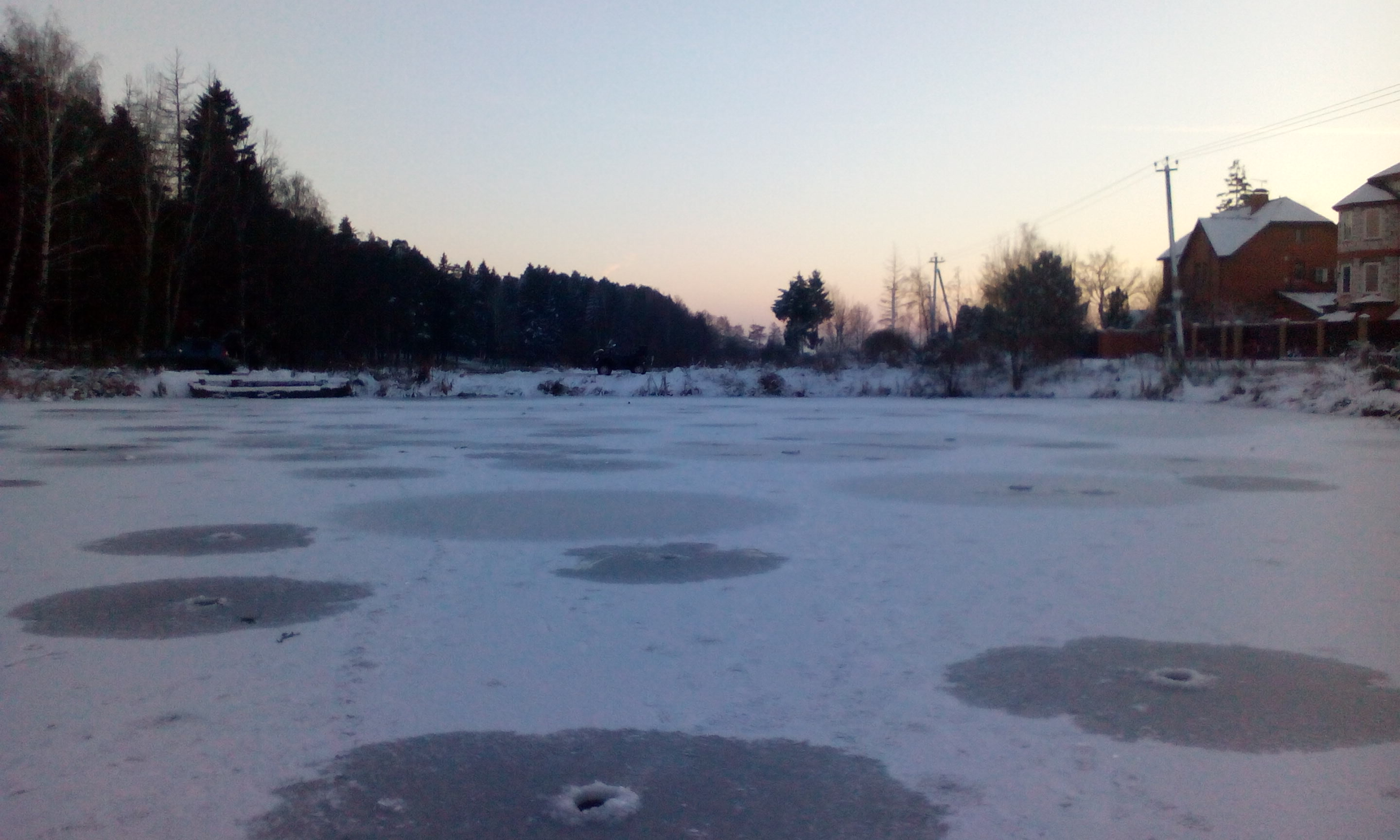 Открытие не состоялось, лёд 3-4 см. Зашёл, отошёл от берега на пару метров. Лёд гнулся и трескался. Когда начал бурить, провалился. Лёд прозрачный как стекло, рыба под ним разбегается, когда подходишь. Завтра повторим. >>6240 - кун