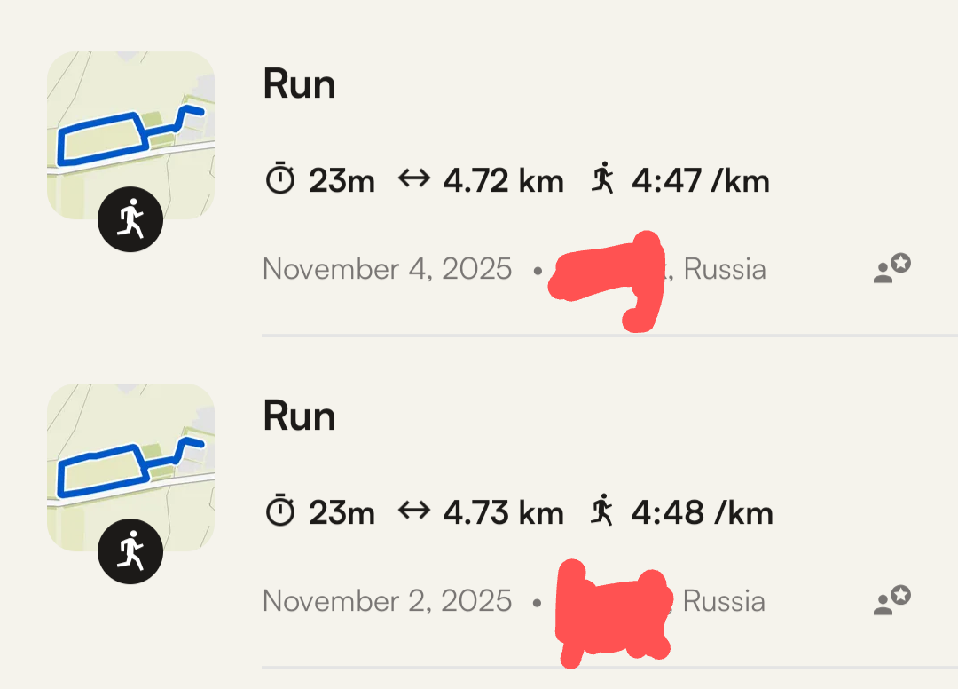 Ну пробежался сегодня один круг и он ощущался почему-то мучительно. Если прошлую практически такую же пробежку сравнение на пик 3 я бежал легко, то сегодня ноги словно ватные и супер тяжёлые и дышать невозможно -- без буффа холодно, с буффом дыхание будто стесненное, ещё и ветер замедляющий хоть когда сбоку, хоть когда в ебало. Почему при одинаковых результатах такое разное восприятие пробежки я хз, может из-за погоды.