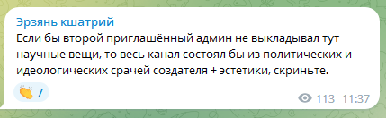>какое изысканное хамство!!! Совет "оплодотворяться и рожать" как скотине во дворе! Что будет потом -МОсква решит? Петр Тултаев уже советовал это эрзянам на Раськень Озкс! Жаль, что вы стали его последовательницей! Но Вы правы! Так жить удобнее! >вы не можете меня оскорбить, да и вряд ли кто другой сможет. Попытаться - да, но результат недостижим. Здесь же речь не обо мне. Речь о нашем народе. Используя частое имперское "чувствуете себя униженными и оскорбленными", вы помогаете тем, кто нас такими делает. Дескать, на что вам жаловаться? Увы это так. Наш народ подвергается унижению, оскорблениям и уничтожению. Но проще сделать вид, что все хорошо и "молодежь" чувствует себя прекрасно! А есть какие то ненормальные вроде "болькиных - мусалевых", но их единицы. Вы думаете мне или Григорию Дмитриевичу было трудно стать "лучшими друзьями" власти? Выпил с тултаевым, на гармошках сыграли, сказали пару слов в микрофон про счастливое прошлое, настоящее и будущее "мордвы"! Получить грант, как Женя ледяйкин миллионов пятнадцать на потемкинскую деревню и жить в свое удовольствие! Нет? Мы не унижены, не обижены и не оскорблены! Мы просто эрзяне и считаем народ свой народом, а не населением. Вы же много где бываете, правда? Эрзяне не заслужили такой жизни как у финнов, эстонцев, швейцарцев? Он что достоин того положения скота "плодитесь и размножайтесь"?! Как ваш язык повернулся, и рука не дрогнула такое нацарапать? !!! Видимо правильно сказано, что нет большего врага для народа, чем его интеллигенция воспитанная оккупантом. Многим не нравится то, что я говорю. Но я пообещал своему народу говорить правду, независимо от того кому я её говорю и нравится она или нет. Правда в том, что мы можем выжить и зажить как люди только объединившись как эрзяне. Никакие изменения названий и первых лиц ничего не дадут народам РФ. Никакого светлого будущего не может быть в составе русского народа, только бесконечное гуллагство!