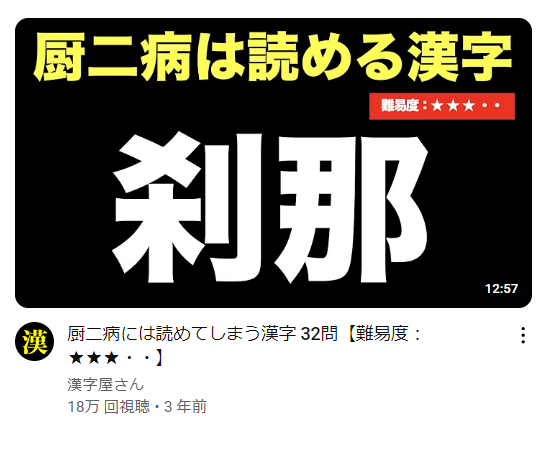 Видос не открывал, но с превьюхи проиграл. 刹那 ведь часто встречающееся слово, хули уметь его читать. Даже подумал, может там подвох какой, и открыл его в словаре, сравнил все чёрточки, а нет подвоха.