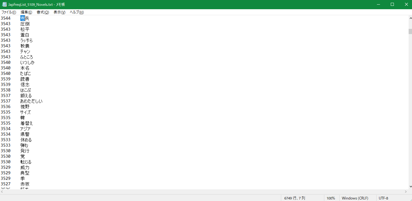 >>731203 Мне как-то стало не хватать новых слов и я выгрузил из джишо весь список common-слов, удалил дубли автоматикой, и после этого руками прошелся, выбирая какие слова добавить, а какие пропустить. То есть отдаленно похоже на то ты описываешь. Так вот, это было крайне уныло и муторно, и я не рекомендую повторять мои ошибки. Тем более что у меня хотя бы были common-слова, а у тебя какая-та параша на скрине. Мне только 答え合わせ встречалось, остальное либо совсем обскурная хуита, либо слишком прозрачные составные слова (например, 答弁 без 書 есть в кор10к, и в общем-то оно и не нужно как отдельное слово).