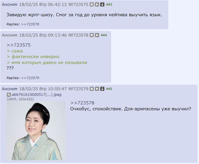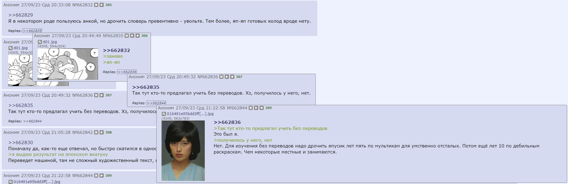 Это наблюдается повсеместно. Например в разделе манги, со временем старожилы начинают тащить корейщину и китайщину. Я даже видел еблана который пиздит про немецкий язык в японском сообществе, прям лезет в треды и нагло оффтопит. Нитакусечные свиньи они такие, у них невтерпёж, когда японский теряет свежесть новизны они начинают тащить всякое левое говно чтобы снова выделиться.