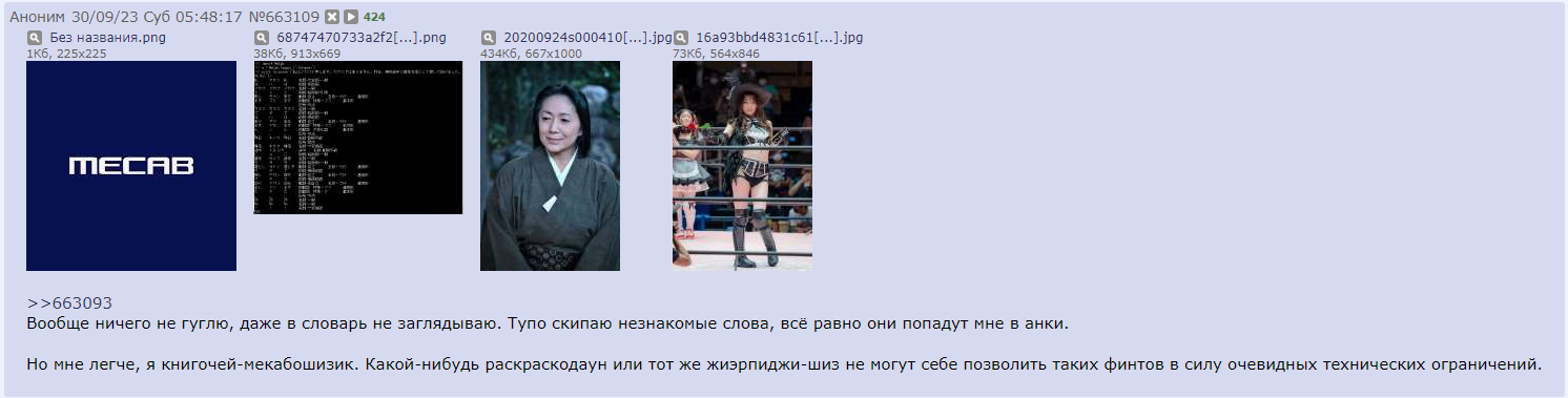 >>731770 В миру анимой называют весь анимушный контент. Потому что эксплуатация похожих художественных приемов, разница только что где-то надо буквы читать, где-то ещё кнопками бегать. Эта сегрегация, что я читаю ранобки, я играю в игры, а я смотрю только пост-артхаус ретро-аниме - в контексте нахуя учите язык выглядит максимально виабушно, кек, кринж. Я илита; господи, только бы меня с аниме не перепутали, надо обязательно написать, хоть и не спрашивали.