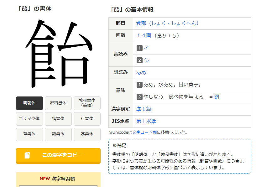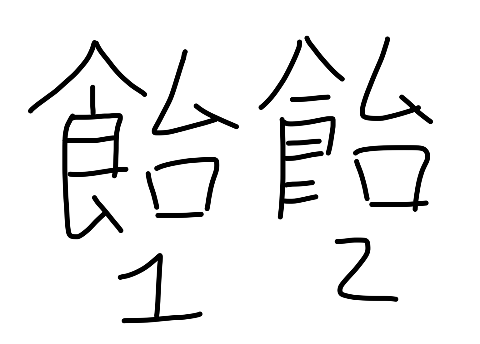 Хлеб был. Давайте конфеты заодно обсудим. Не могу понять что не так. Уже месяц учу готовую колоду core2k6k и все было нормально до тех пор пока не попался канж 飴. Он отображается как 1 на пикриле, я сначала подумал на китайский шрифт, но если зайти в edit - там будет 2. Со шрифтами, кстати, все нормально, другие символы показывались корректно. Я просто стараюсь в карточках типа listen перед ответом сначала написать от руки нужное слово и только потом смотреть. Здесь вроде как номер 2 нужно писать, но если загуглить конфеты(от asahi например) там на обложке вариант 1,а в названии показывает вариант 2. В jisho тоже показывает вариант 2.