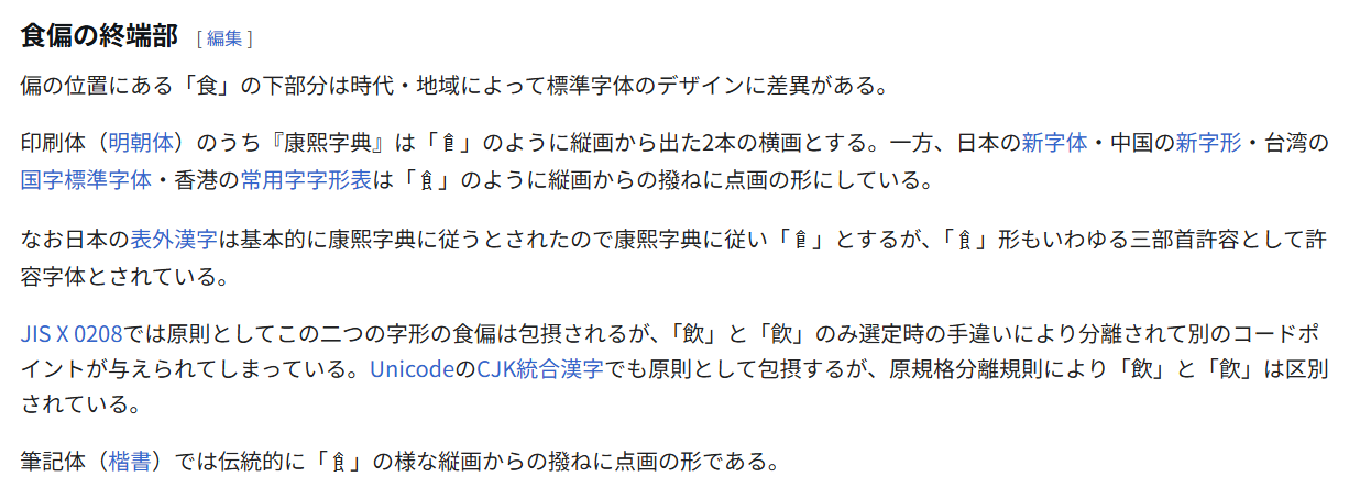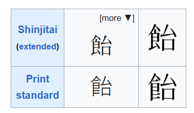 >>733730 Только эти стандарты относятся исключительно к кандзи в электронном виде, а общий расклад такой: то, что в списке дзёё, по стандарту пишется с 飠, а все остальное - с 𩙿, это если следовать строго написанию синдзитай. Но есть еще такой нюанс, как расширенный синдзитай, и там часть 𩙿 тоже заменили на 飠, в том числе и в 飴, только надо понимать, что это пока еще полуофициально.