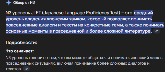 Но вообще, главное проблемой с N3 будет не грамматика которая ещё куда ни шло, а мизерный словарный запас.
