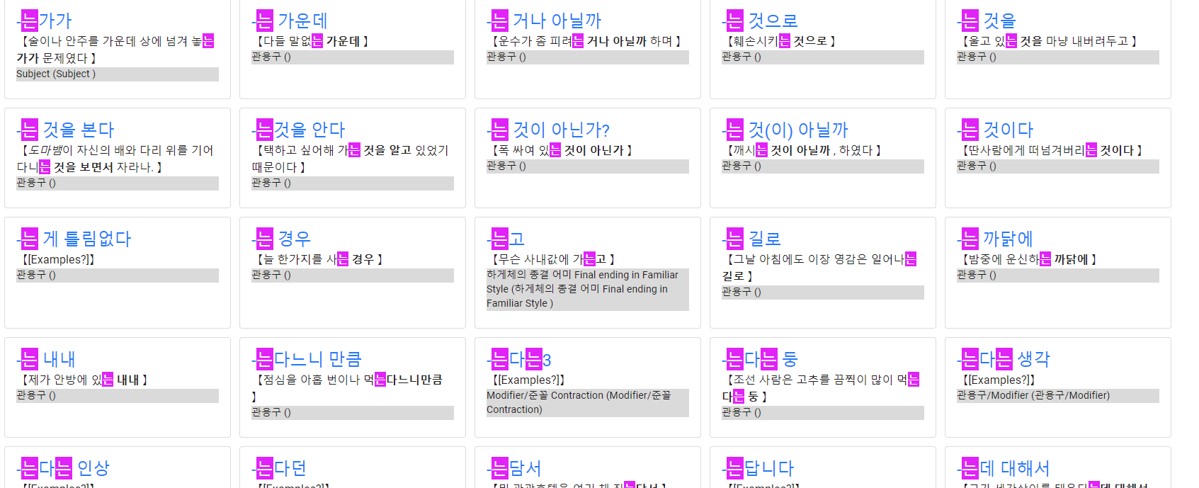 Как учить по этому и как юзать. Ответ - никак, бери просто Korean Grammar in Use 3 книжки и иди по ней (там тоже многое сокращено, но даются важные нюансы) А сайт выглядит полезным только для челов уровня "ну я свободно владею языком, но забыл конкретное значение конкретной грамматики". Чисто список для тех кому ни обьяснение, ни примеры, ничего не надо, просто сама форма