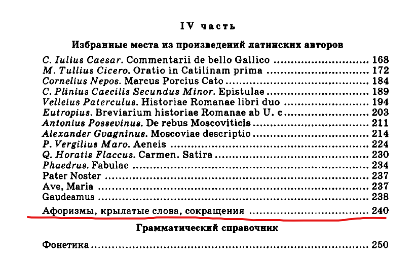 Сальве, дискипули латинай. Есть ли у кого-то пикрл самоучитель латинского языка Козловой? У меня просто есть вопросы. Не по упражнениям или материалу, это-то просто, я с основами уже знаком, а с заданием в первой главе, мол, выучить не менее трёх афоризмов из таких-то номеров. Вот только никаких "номеров" в дальнейшем в учебнике не встречается, как и указанных в задании цифр.