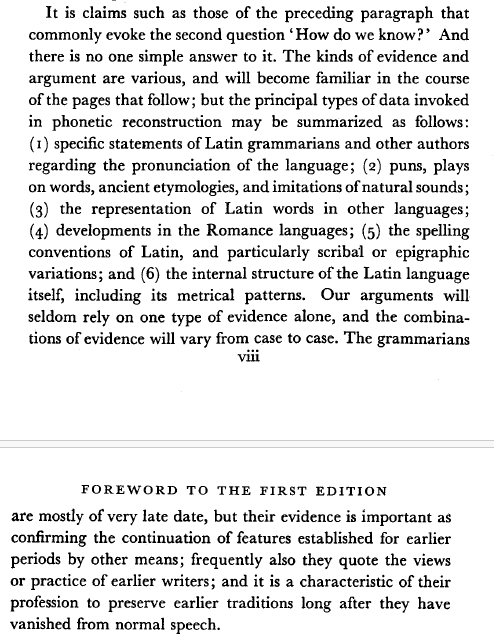 >>663335 Не только стихосложение, туда же данные надписей (апексы плюс длинная и как знаки долготы, долгую i еще как ei какое-то время изображали, плюс данные романских языков - в большинстве их (кроме сардинского и мб еще какого-то) у латинских долгих и кратких (кроме а) рефлексы разные.