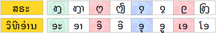 >>682349 Значок для R1 ɔ/R2 u идентичен символу перерегистровки, употребляемому при огласовках сверху буквы (здесь приведены курсивная и прямопечатная его формы). И даже закодирован с ним в одну ячейку уникода. Два других перерегистратора — ៉ (из этим. звонкого ряда в глухой) и ៊ (из глухого, в т.ч. ʔ, в этим. звонкий). При них ុ значит всегда ɔ/у