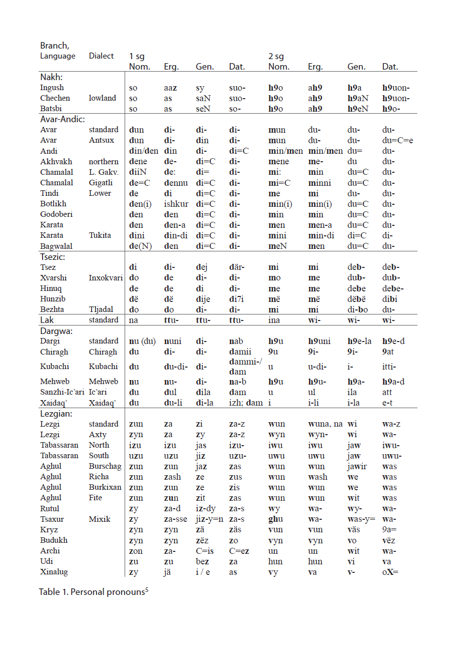 >>707713 К местоимениям в кавказских есть вопросы, большинство авторов считает что базис для местоимений есть в нахских, лезгинских, а вот авторы по типу Николс считают наоборот. Но всё-таки поразительное сходство например в местоимениях адыгейского и чеченского, которые из разных семей дают отсылку, к тому что это и есть архаика, а на них там и лезгинский похож, к примеру