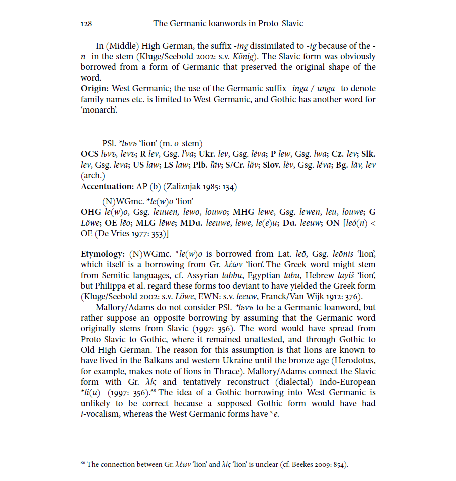 >>714414 >Early scholars (Miklošič, Uhlenbeck, Kiparsky, and still supported by Germanists) presumed borrowing[2] from Old High German obaz, obez or Proto-West Germanic *obaet (“fruit”), which has been dismissed since then (by most Slavists) for phonetic and chronological reasons (though these reasons would not necessarily hold for a pre-OHG borrowing). Всё не так однозначно.