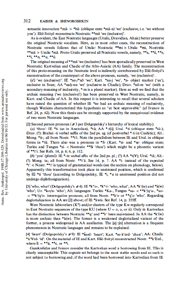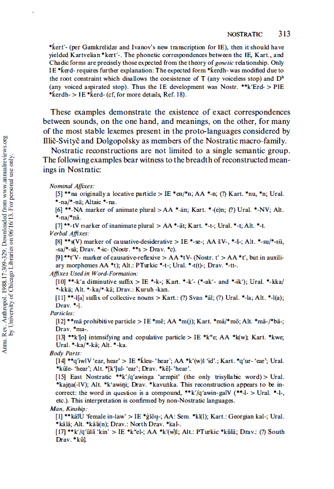 >в ностратическую макросемью в широком смысле, наряду с афразийскими и картвельскими языками Какие реконструкции убедительно показывают, что картвельские можно рассматривать как далёкие параностратические, а не околоядрёные (индоуральские, алтайские)? Либо между ними огромная разница по отделения от нострато-афразийского пра-праузла, либо вся реконструкция лажовая. Неужели одной разорваной интерфиксации достаточно? Что по лексике? Или это просто фиговая формулировка?