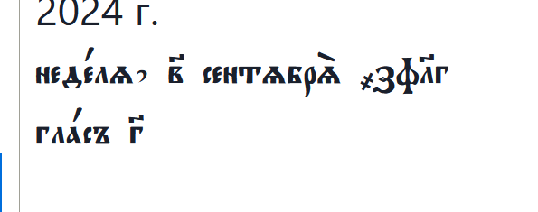 "Се бо первыи створеныи єсть день, иже зоветьсѧ первыи, осмыи ꙗвѣ же свѧтаꙗ неделѧ, въ ню же и державу смертную раздруши, и губительство попра и ѹпраздни воскресеньємъ изъ гроба."