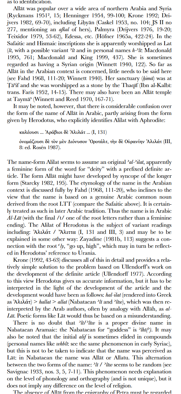 >>749936 не факт. Во-первых есть Allāt, которая у арабов собственная богиня. Во-вторых теофорные имена с компонентом -llāh встречаются еще на рубеже эр, в греческих и набатейских источниках, принадлежат арабам.