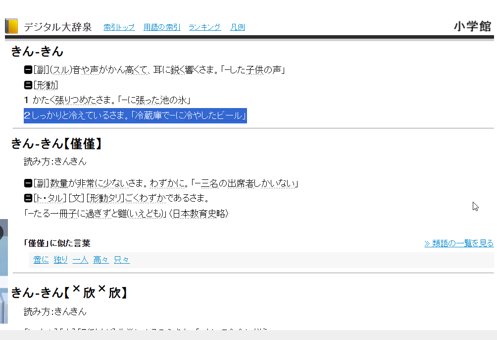 >>733663 Прочитал вторую главу. Новые слова были: ぷらんぷらん、ぱたり、ようく、ずどん(ずどーん)、花婿、ぴっ(это уже обсуждали в треде)、すいっ, и ещё я раньше встречал только びゅんびゅん, а не びゅん。Новое выражение: 「顎をしゃくる」。 В предложении 「でも黒い洋服って、形ですてきに見えるものよ」 слово 「形」 использовалось в значении, в котором я раньше вроде не встречал его.