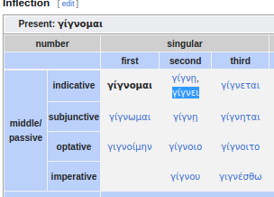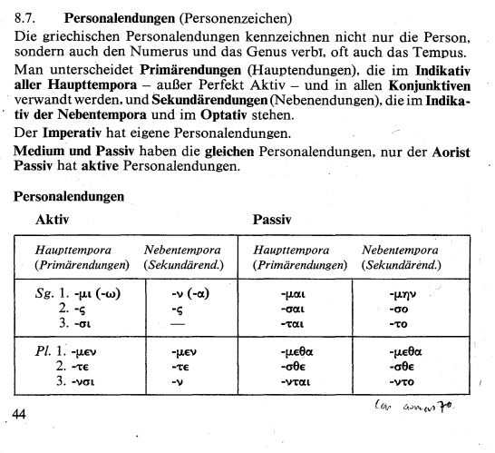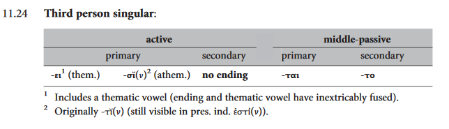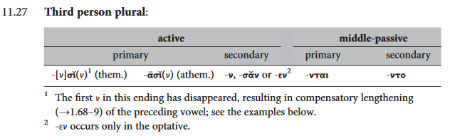 Поясните как вообще работает соединительная гласная (в читаемой мной грамматике она называется Bildevokal). Вот на второй картинке она отделяется только в 1/2 Pl., хотя разве нельзя сказать, что полный ряд был бы o-ei-ei-o-e-ou? Вот в оптативе она должна заменяться на суффикс -oi- и вроде бы так логичнее, хотя вот в 3.Pl окончание вообще конкретно распидорасило. Да и вообще везде какие-то отклонения от первой таблицы, откуда там -ei в третьем лице если в таблице чётко написано -si?