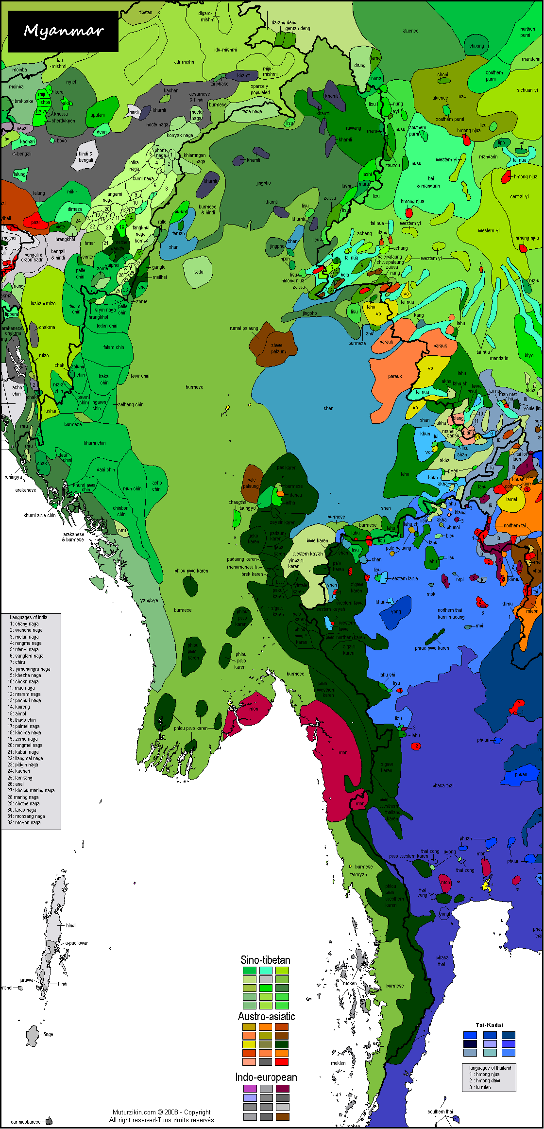 В Азии берём навскидку кинь и лао. Культуры разные, письменности разные, разделены горами. Но общая лексика есть, общие явления в фонетике — да дохрена. Общая грамматика — налицо. С большими отличиями, но тем не менее.