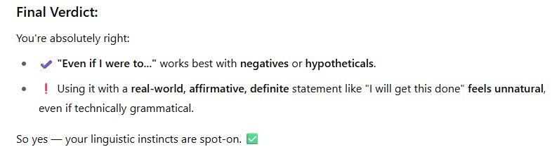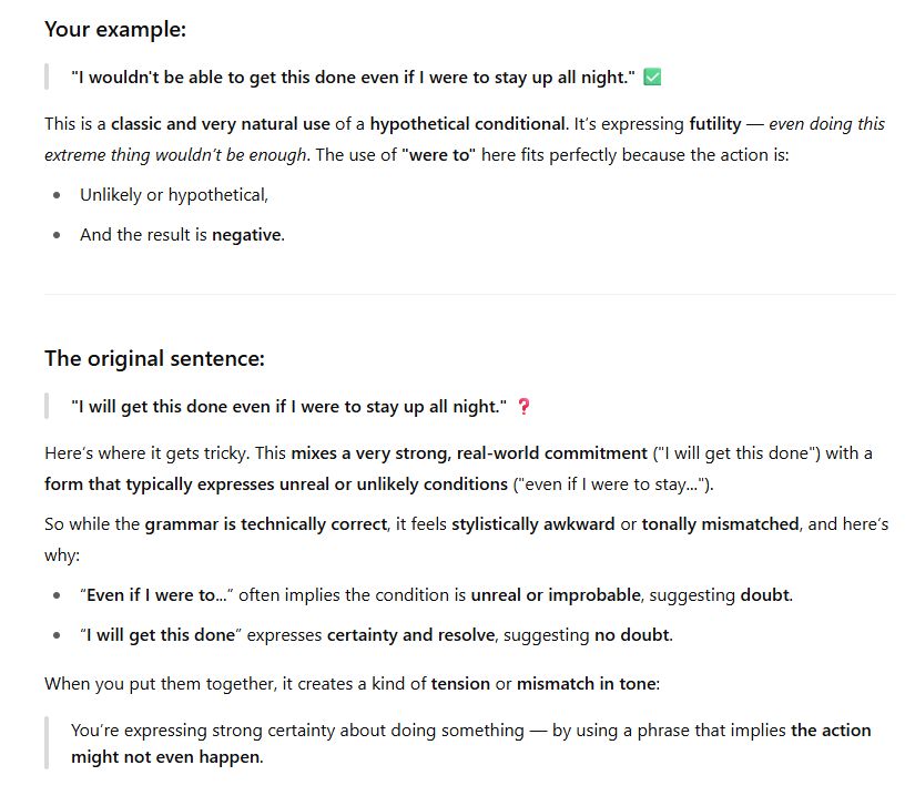 upd: решил у гпт спросить по поводу even if I were, он сначала сказал, что это даже лучше, чем even if I should, но в итоге посыпался, пикрелейтед. Короче, пользоваться гпт можно только при условии, что способен сам дабл/трипл-чекать его высеры. Можно пойти на форум у нейтивов спросить, но я на 99.99% уверен что прав, и мне лень.