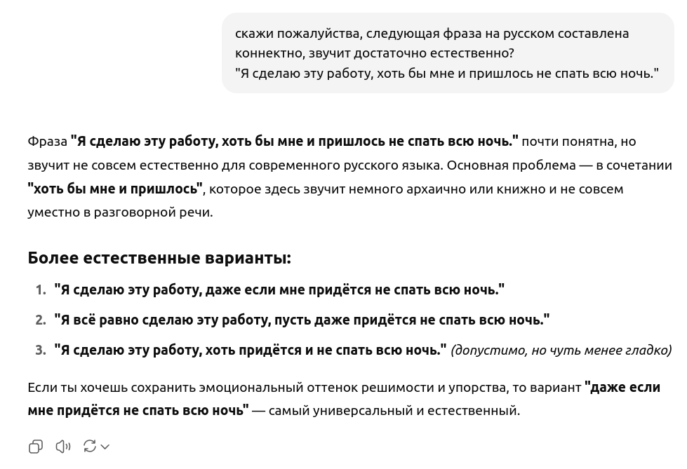 >>738965 >>738966 Я говорю, ее нужно уметь проверять. >I will get this job done, even if I happen to have to stay up all night. Это нормально, вроде, но едва ли такое кто-то скажет, опять же... "even if I have to stay up", всё. >>738971 >моя "легкая корявость" (читай: ахинея в виде I will get the job done even if I were to stay up all night - да, кретин, ты сам это написал, теперь не отмоешься) это не просто "в рамках закона", это вообще "высший пилотаж" английского! >>738972 Я тебе, утырку, уже второй раз демонстрирую, что нейросеть буквально еще проверять нужно, потому что она может писать ерунду едва ли не похлеще тебя, дауна. Хотя мы уже знаем, что для тебя английский текст это иероглифы, да и русский, видимо, не сильно легче дается.
