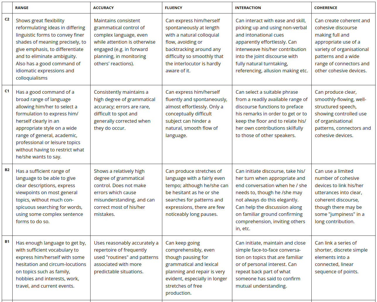 Главный критерий к B2, это достаточно спонтанная речь, человек не должен запинаться от того, что думает, как ему что-то сказать. И при этом говорит более-менее грамотно. Но от него не требуется очень живая речь, массы идиом или связок, это уже критерии для C1-C2 уровней