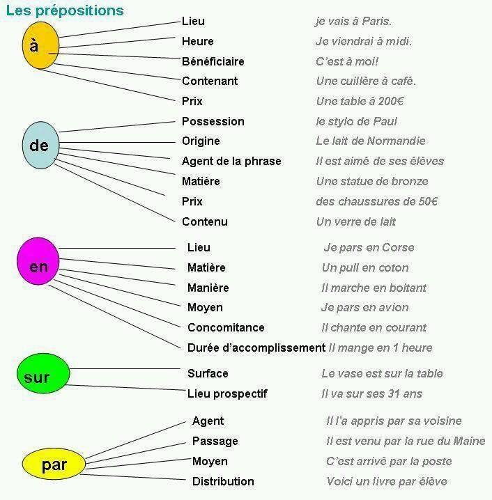Предлоги: à, chez, dans, sous, sur