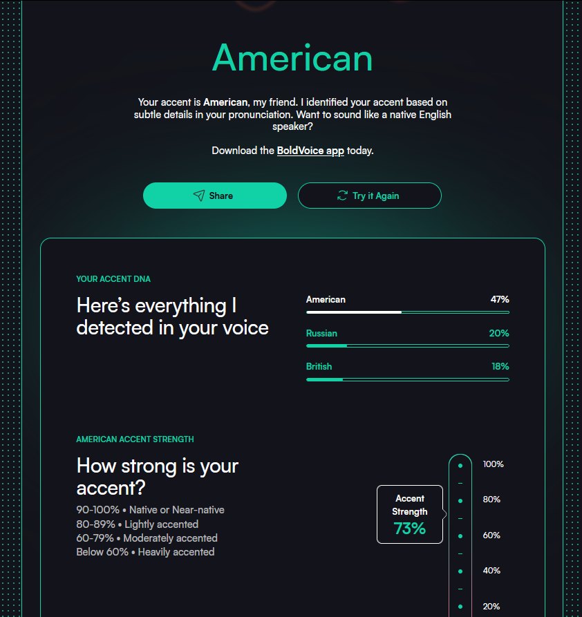 Крайне сильный момент, почему с первых слов русское произношение от английского выделяется, это "форма звука". В русском они почти все мягкие, их сила нарастает постепенно, в английском, особенно американском, звуки намного более резкие, их сила нарастает очень быстро. Это и про гласные, и про многие согласные звуки.