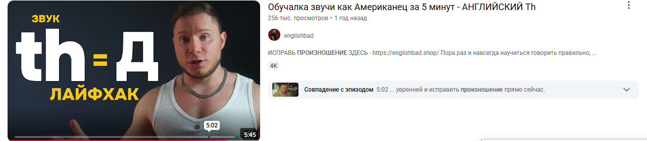Я NTA, видос не смотрел и не буду, но на заставке чётко написано th = д. Очевидно, там не [θ] под th подразумевается, так что говорим о [ð].