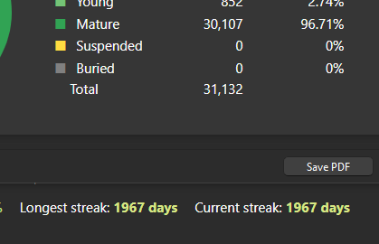 > Ты больше 2к дней учил Начал анки где-то через месяц после начала изучения японского, за который попримерялся к разным методам изучения и прошёл 2-3 главы генок. Первые 20к слов были за первые 2 года, потом стал реже встречать новые слова. Щас стоит 10 новых в день, но я часто меняю в зависимости от размера бэклога.