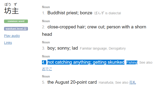 Например, позавчера мне попалось 坊主 в значении пикрил и пришлось создавать карточку.