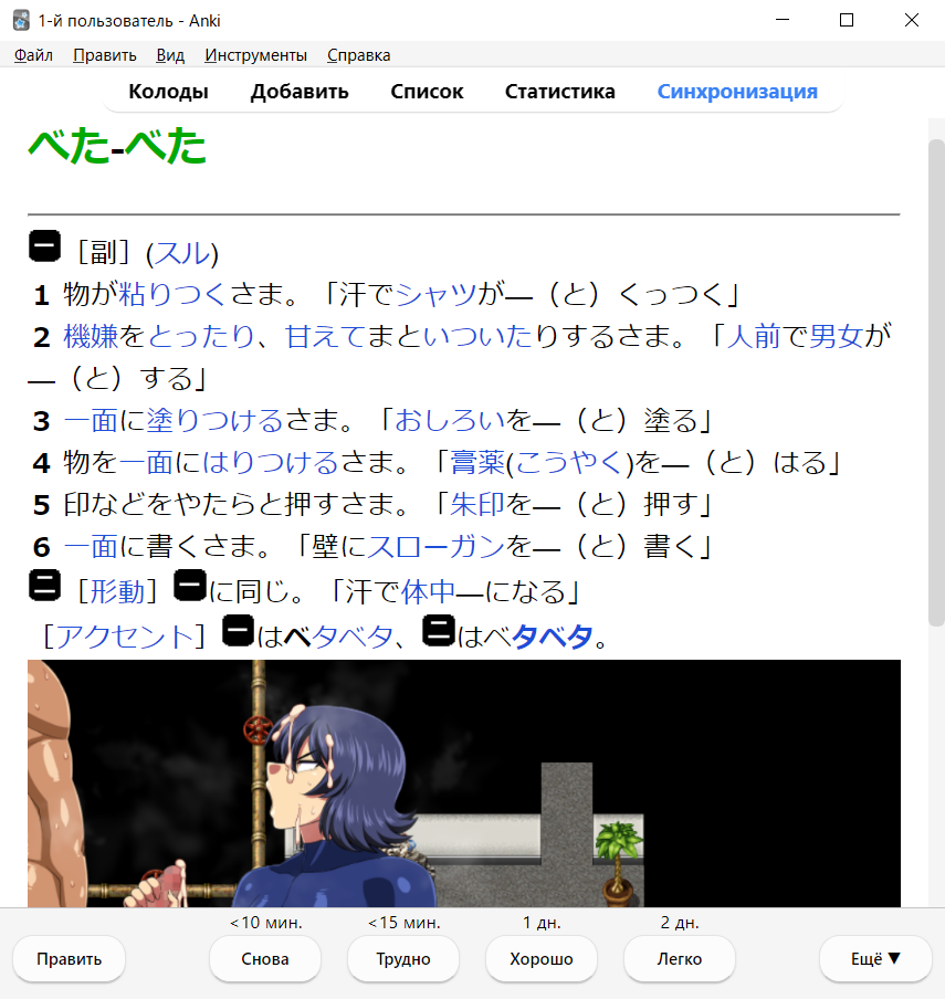 > поделитесь сохраненными статьями из словаря На возражения, что учить следует в контексте, эти же додики потом доказывают итт, что учат - в контексте, на самом деле; что анки просто закрепляет материал. А по сути, как анимешники, которым давно уже аниме не доставляет, но заставляют себя тайтлы наворачивать только чтобы МАЛ заполнять.