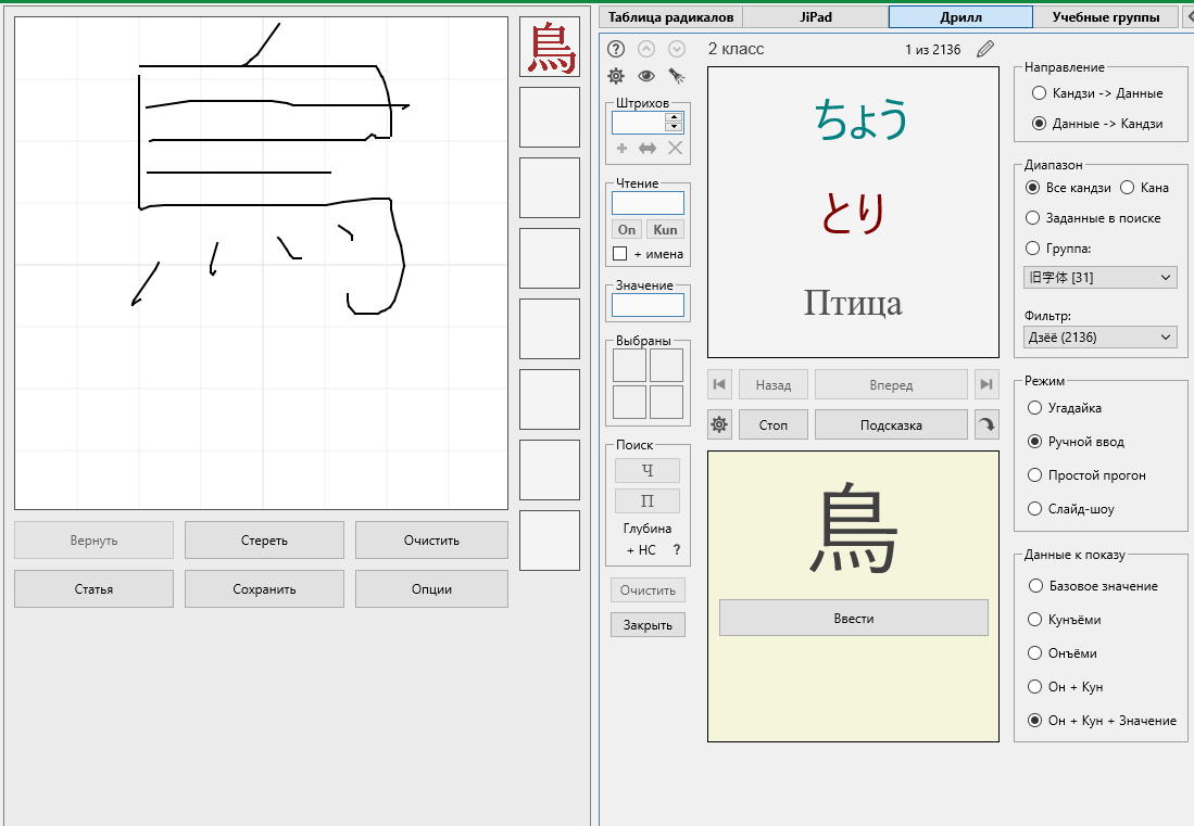 Давненько не повторял кандзи. Напишу как я это делаю, а то когда пишут только про карточки это скучно. При повторение запускаю в яркси повторение нужной мне группы, к примеру 8ой школьный уровень, 486шт, у меня на 3 группы разбиты, при повторении показывает только сам кандзи, выписываю в txt все где не могу вспомнить китайское чтение или японское, или не учил его. Выходить может довольно много, 70-80 штук из группы 200, но это ерунда, так среди них мало того что надо учить с нуля или сложно запомнить. Учу/повторяю неспешно в течении недели, затем проверяю себя,и с удовлетворением отмечаю что на 90% все помню правильно. Профит. Таким образом повторил- доучил то что не помнил за пару месяцев около 900. Это конечно задротство и ОКР, но хочется чтобы все кандзи были как буквы, то есть сразу видел их чтения глядя на них.