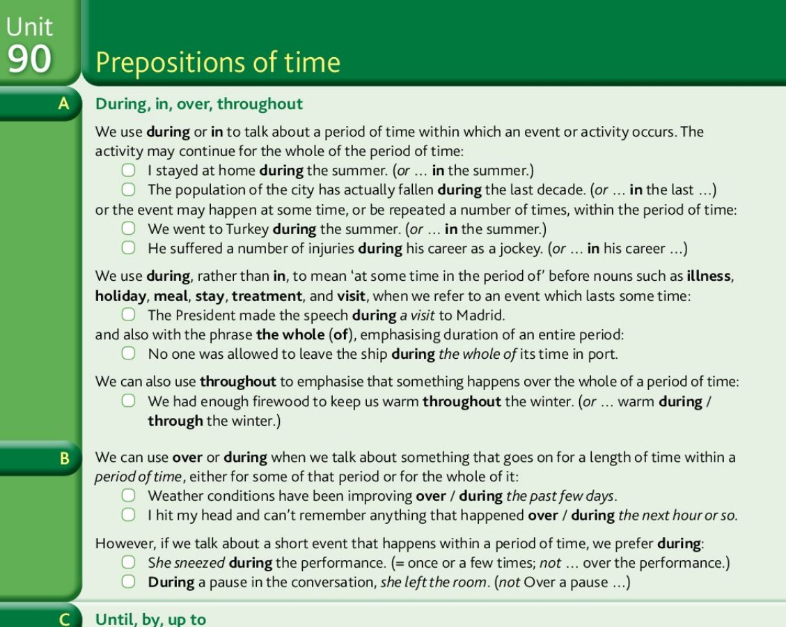 >>745089 >хотя я не совсем понимаю, что составляет грамматику английского языка, пока выглядит как набор рандомных советов о том, как лучше. мне больше всего неясна применимость. например, не понимаю разницу между >throughout the entire week и over the whole week или их вариации с for Грамматика это то, что описывается правилами с какой-то логикой. Идея, что впервые сталкиваясь с конкретным примером и зная правило ты можешь сказать, как правильно.