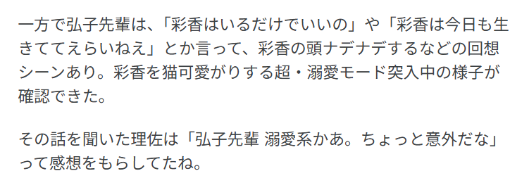 >заботливая >любит на уровне души нечаяния Не охота доебываться, второе очень близко, но вообще 溺愛系 так просто не переведешь, это название специфического жанра. Если максимально упростить, первая фраза там подразумевает что-то вроде "Хироко-сэмпай, ты сейчас ведешь себя как некоторые штампованные героини аниме/ранобок/визуальных новелок, слепо, всей душой и полностью бескорыстно влюбленные в ояша". Подробности тут, кому интересно: https://dic.pixiv.net/a/溺愛