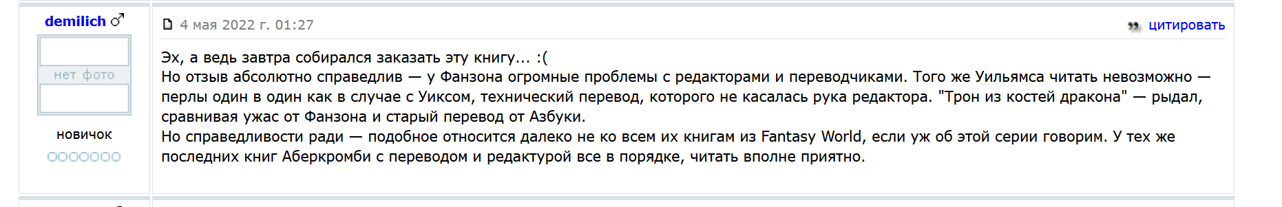 Права на издание последних двух частей не будет я так понимаю? Into the Narrowdark еще в 22 вышел и нихера до сих пор. Можно и в оригинале конечно почитать, но хотелось бы серию книг в одном издании на полке. Сука, как с маршем теней, то же дерьмо выходит. Ну почти.