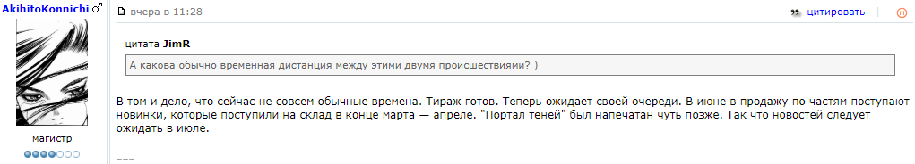 >>301564 Ну в лабиринте смотрел - не было. А в других я хз чо как. В лабиринте-то там оплатил и курьер бесплатно доставит прям до твоей двери, кланятся будет, величать "царь-крендель". А в читай городе помню весь цикл земноморья резервировал, чтобы приехать и забрать, там эта книга 2700 стоила, так они зарезервировали, а стоимость в 3700 указали. Я аж охуел с их ценовой политиики.
