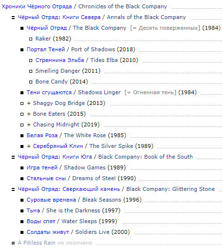 Наиболее известный цикл - Чёрный Отряд. Также есть неплохой цикл про детектива Гаррета, Империя Ужаса и Орудия Ночи. И ещё несколько малоизвестных вещей. https://fantlab.ru/autor132 На доске иногда появляются обсуждения данных произведений, поэтому решил объединить их в один тред. Да и раньше, если мне память не изменяет, был такой тред, но, похоже, утонул.
