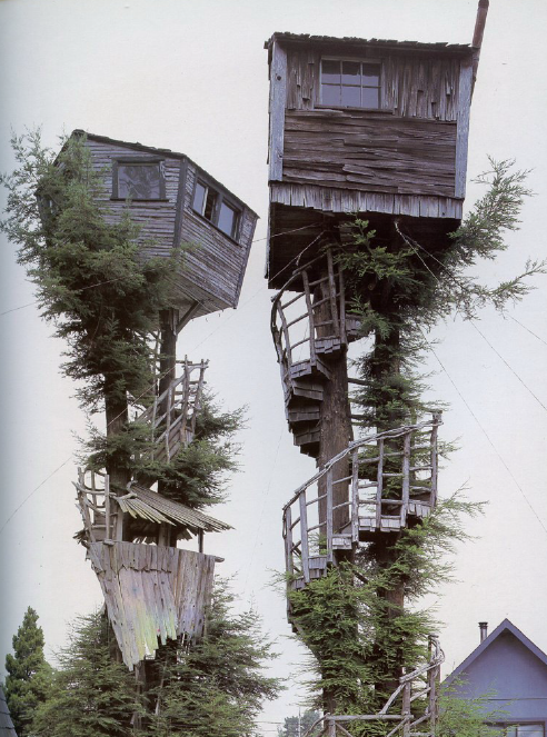 >>453345 Это не полноценные жилища - либо наблюдательные пункты, либо игрушечные домики. Детектится это по отсутствию туалета. Да и как можно внятно сделать туалет на дереве? Если просто срать вниз - под деревом будет стоять дикая вонь и к нему хуй подойдешь, не вляпавшись. Только постоянно бегать вверх-вниз.