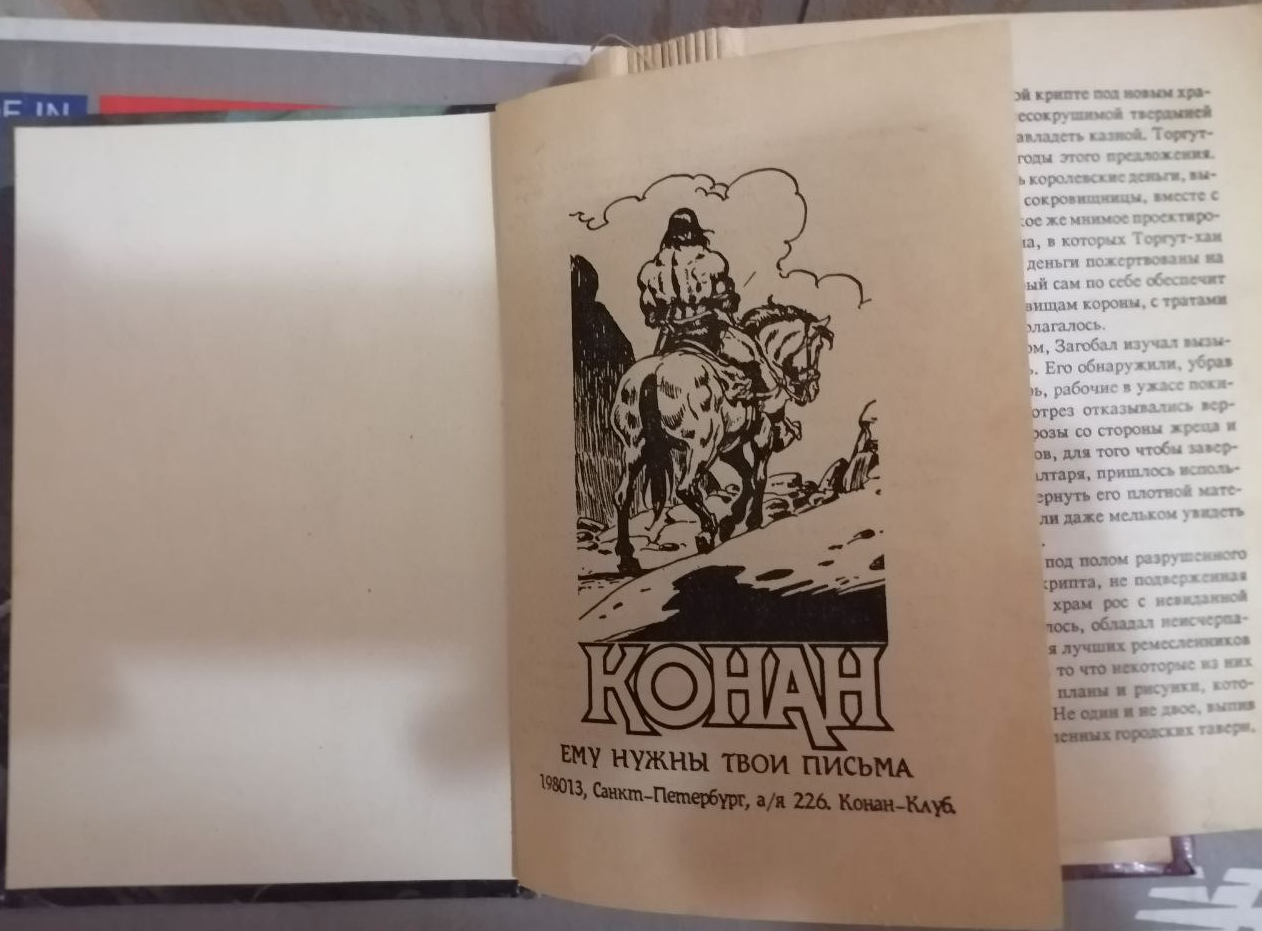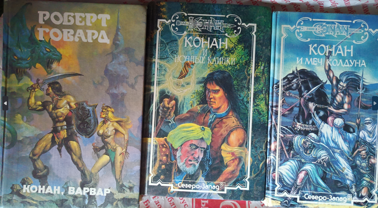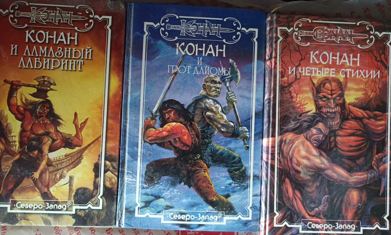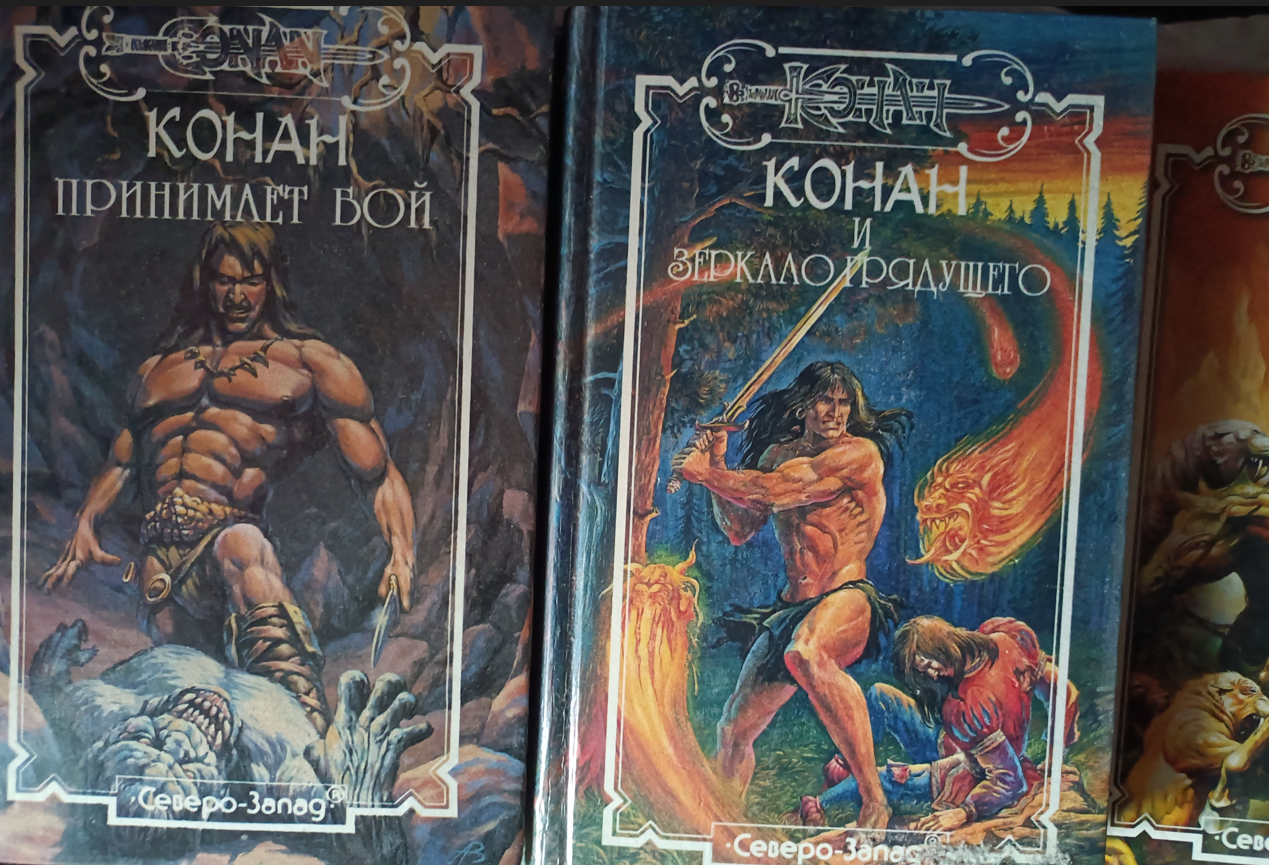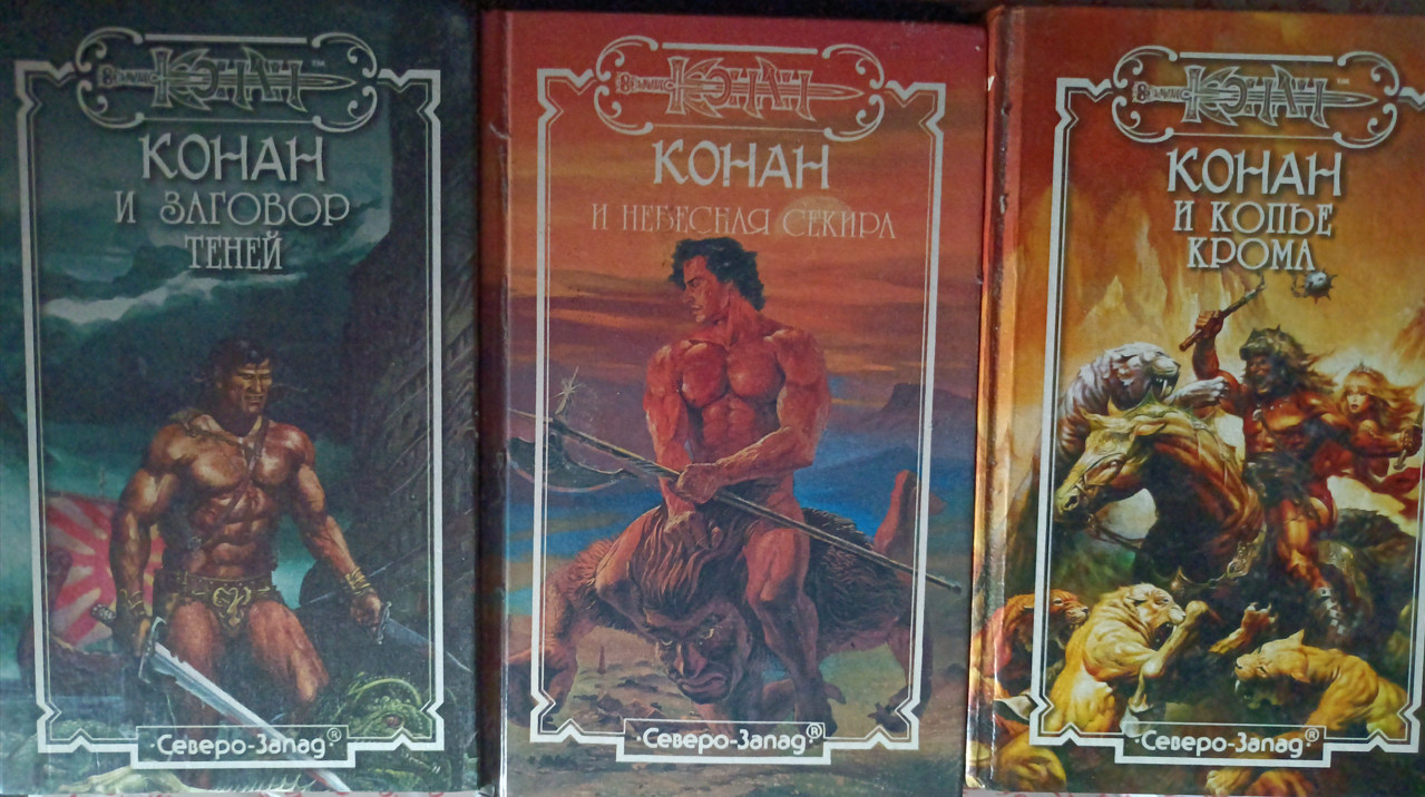 Прошел год, наверное. Увидел в книжном еще одну книгу. Конан идет по следу, автор Шон Мур. Кто-то из предков, уже не помню, с кем я там был, мне ее купил. И вот ее я уже прочитал практически не отрываясь за день. А она еще с элементами хоррора. Офигенное погружение было. Следом мне купили Конан и Живой ветер от Роланда Грина. Точно так же прочитал за день целиком. А еще это была первая моя книжная эротика. Ее там совсем чуток было, но впечатления были яркие.