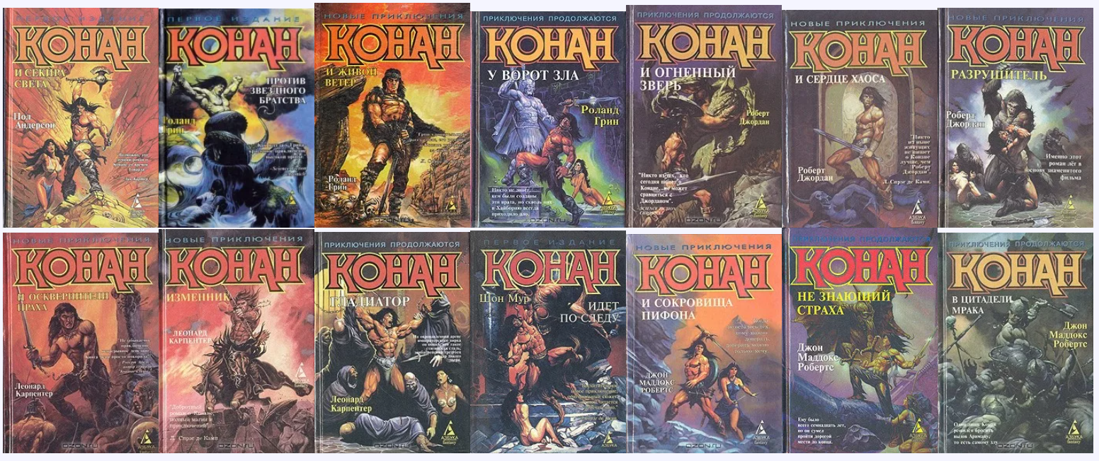 Ну а потом я уже не мог остановиться. Собирал все, что мог найти. Из всей коллекции от Азбуки не хватает только одной книги. Было много годноты, было много ну норм и было несколько откровенного говна. Ну на мой тогдашний вкус. Закончилась моя мания по поиску книг, наверное, лет в 14. Но после этого еще долго перечитывал всю коллекцию, включая и Конана-изменника, который мне изначально не зашел. А самые любимые периодически перечитываю до сих пор. В основном это романы Робертса.