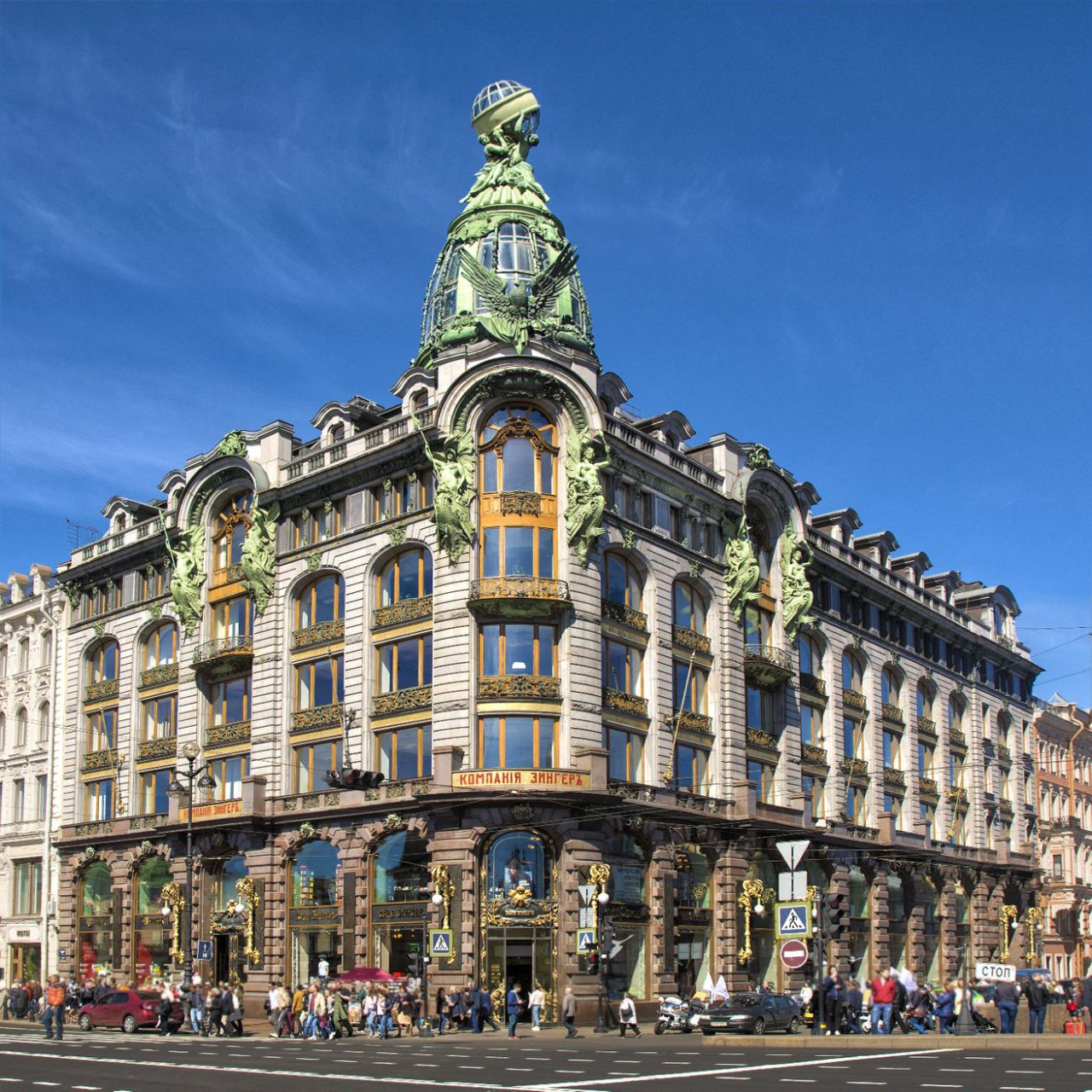 >>523769 Во-первых, у тебя на пикче что-угодно, кроме модерна. Модерн - это дом Зингера на Невском, как самый известный пример в СНГовиях. Обрати особенное внимание на башенку, часть окон которой располагаются в крыше. Ну и до кучи на застеклённую галерею рядом с башенкой. А ещё там есть внутренний двор под стеклом, но я не уверен, является ли он частью изначального проекта или был добавлен потом.